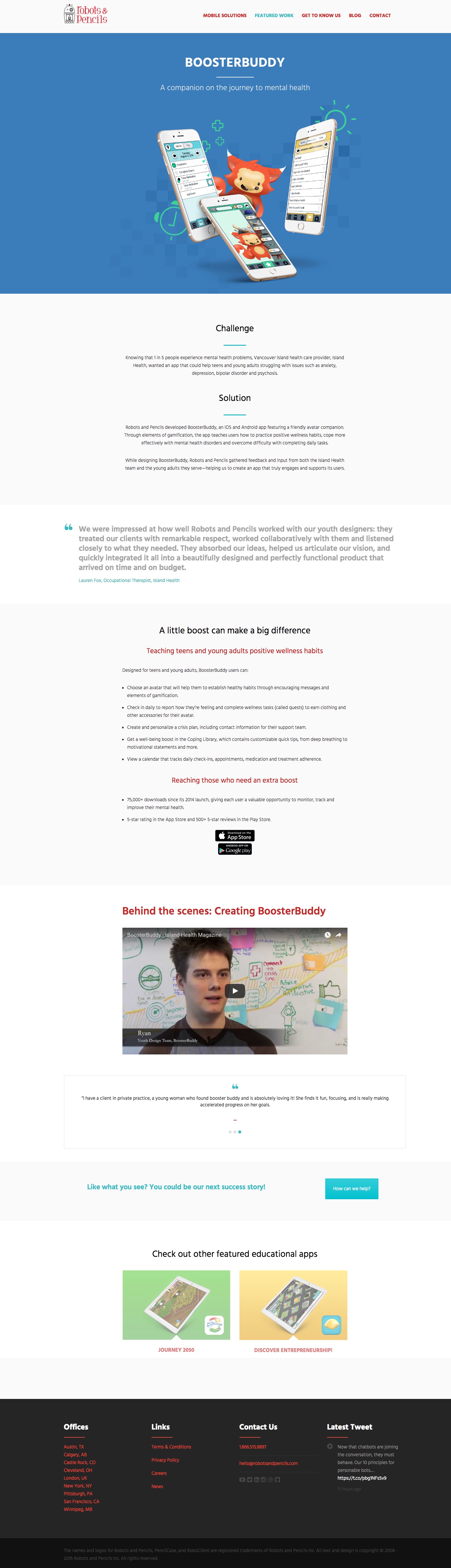 I planned and managed a full website redesign for Robots & Pencils in under 2 months, working with designers and team leaders to edit and refine existing content as well as create new copy where needed.